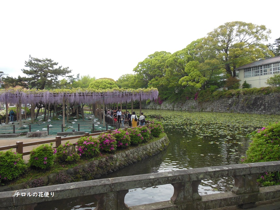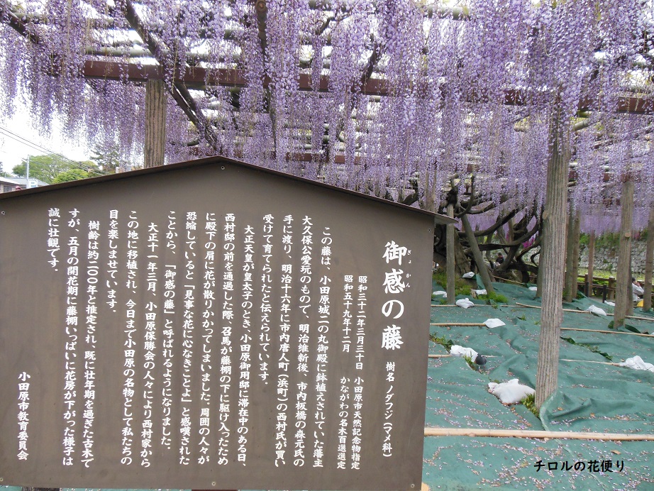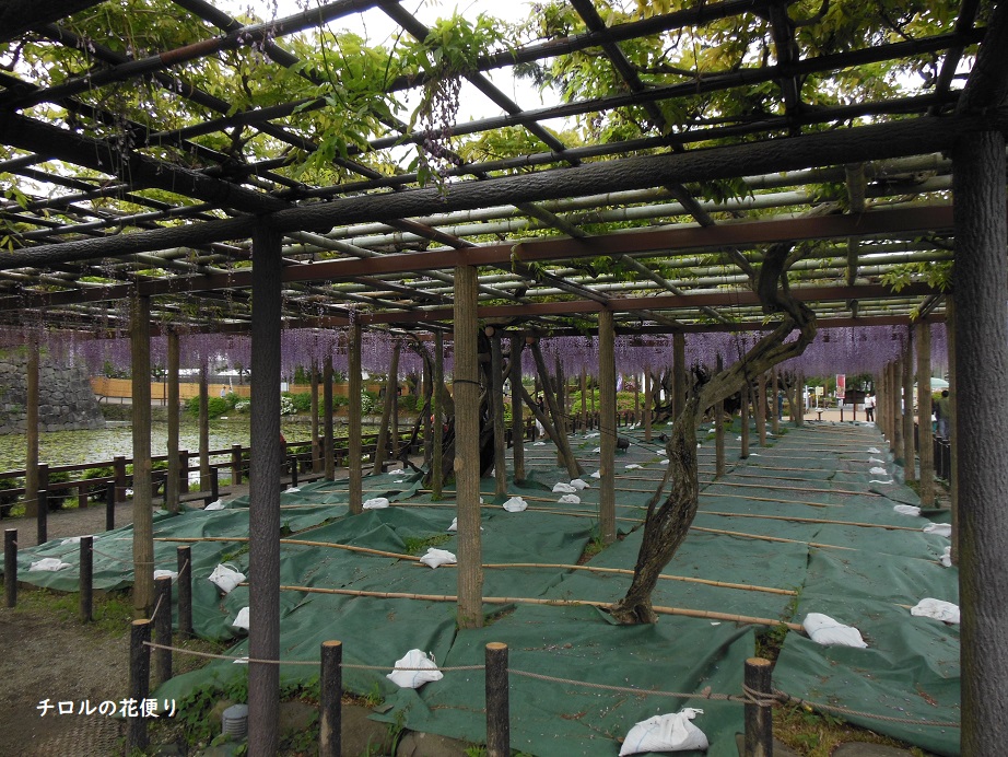 駐車場から小田原城へ向かうと、まずは大きな藤棚が