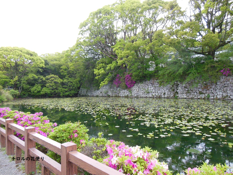 池のような堀と石垣を見ると、まさに城だなって気分。