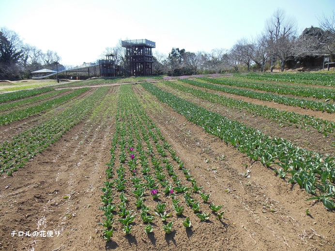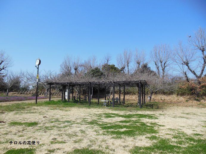 この広い広場に、チューリップ畑とぐるっと桜の木が植えられていて、さらに藤棚もあります。